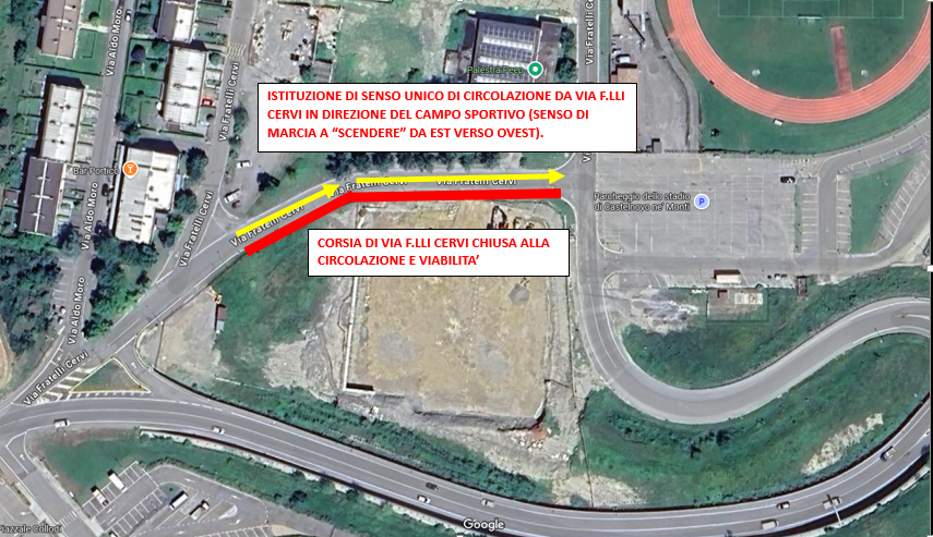 L’amministrazione comunale rende noto che si è deciso di istituire il senso unico di circolazione sulla strada che scende da via Fratelli Cervi verso il Centro Coni, mentre resterà vigente la chiusura di una corsia per un tratto della strada in prossimità dell’ingresso al cantiere del nuovo palazzetto dello sport, a partire dal 15 settembre e fino al termine dei lavori.