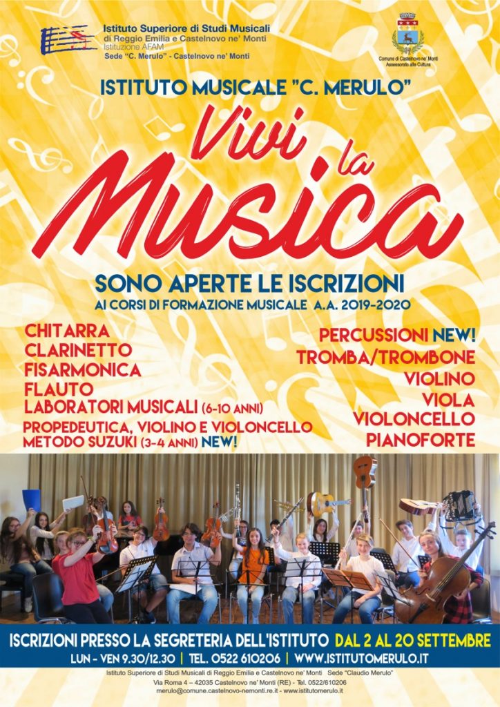 Per informazioni ed iscrizioni contattare la segreteria dell’istituto Musicale in via Roma 4 a Castelnovo Monti, tel 0522 610206, aperta dal lunedì al venerdì dalle 9.30 alle 12.30.