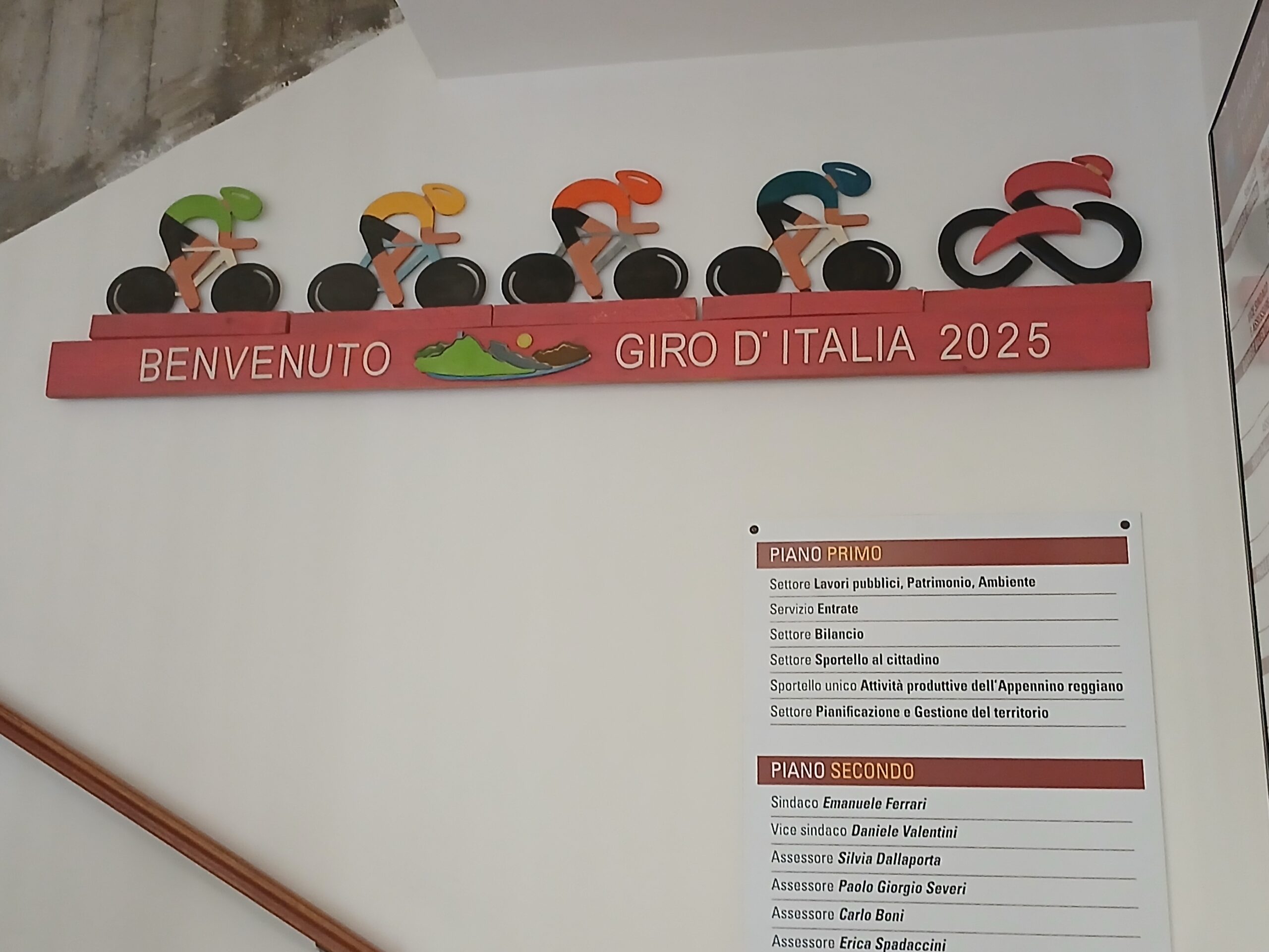 La scultura di Ferrarini trasmette l’idea del gruppo in velocità, con diversi ciclisti ad inseguirsi, fino all’immagine stilizzata che rappresenta il logo del Giro d’Italia. L’opera è stata consegnata al Sindaco Emanuele Ferrari, che ha voluto apporla all’ingresso del Municipio dove tutti la possono ammirare. Un ulteriore elemento, insieme all’illuminazione rosa che da giorni, negli orari serali, contraddistingue l’Isolato Maestà (il grattacielo di Castelnovo) che evidenzia la crescita costante dell’attesa e dell’entusiasmo per lo storico arrivo del Giro a Castelnovo Monti, il 21 maggio appunto, con la tappa la Viareggio – Castelnovo Monti.