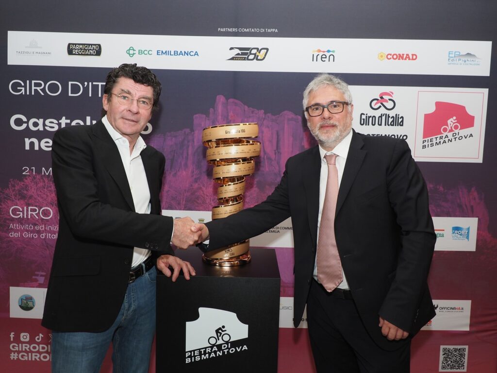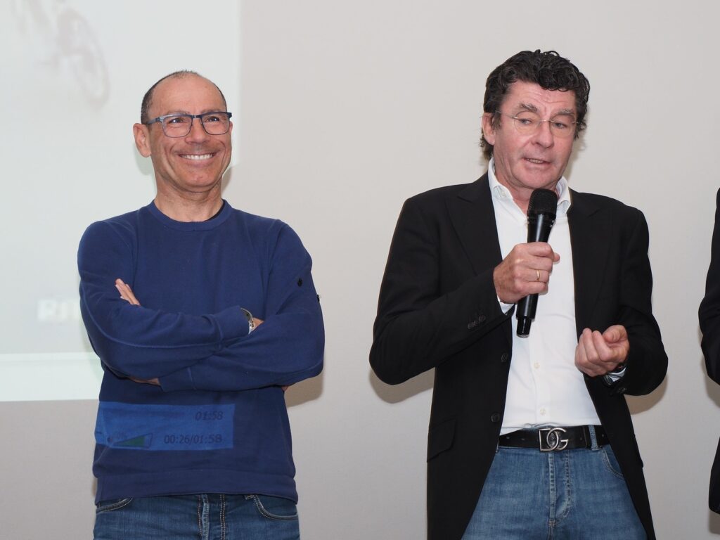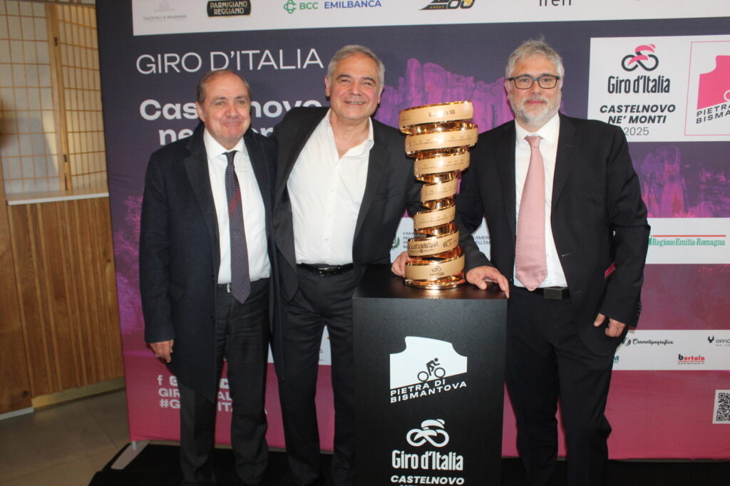 Incalzati sul palco dal giornalista Luca Simonelli, Bugno e Cassani hanno ricordato diversi momenti della loro carriera, i successi frutto ogni volta di strategie di squadra, in particolare quando sono stati compagni in nazionale ma non solo. È stata evidente un’amicizia forte oltre che un trascorso sportivo comune, che ha reso la loro chiacchierata estremamente coinvolgente. Vegni ha raccontato la nascita del Trofeo dell’Infinito, il premio per il vincitore del Giro, che ha portato ed esposto nella sala del Parco Tegge (oggetto di tante foto da parte degli appassionati) e che oggi viene considerato uno dei trofei sportivi più iconici e più belli al mondo. E ha anche sottolineato come quella da Viareggio a Castelnovo Monti potrà essere sicuramente una tappa molto interessante del Giro 2025. In questo dialogo è intervenuto anche il Direttore della squadra ciclistica Bardiani CSF-Faizanè Roberto Reverberi.