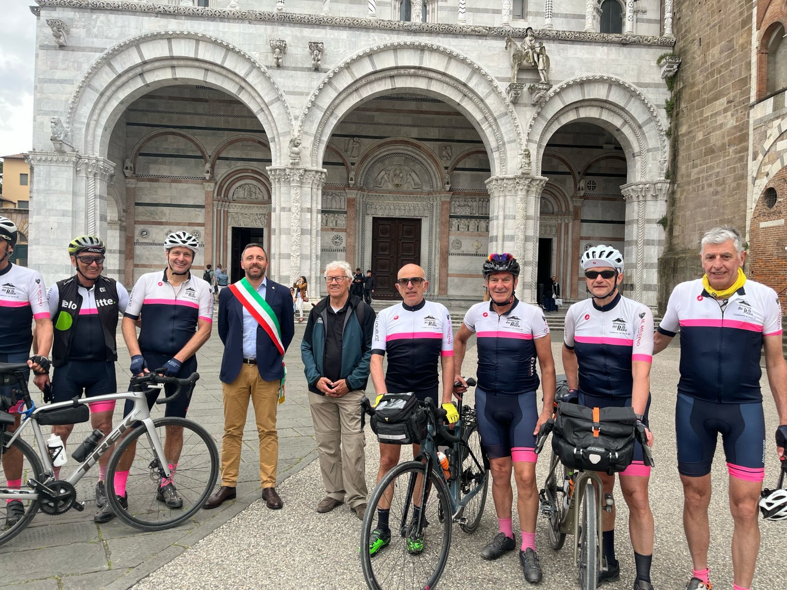 Sosta al Duomo di Lucca per i ciclisti dell’Università del pedale diretti a Roma