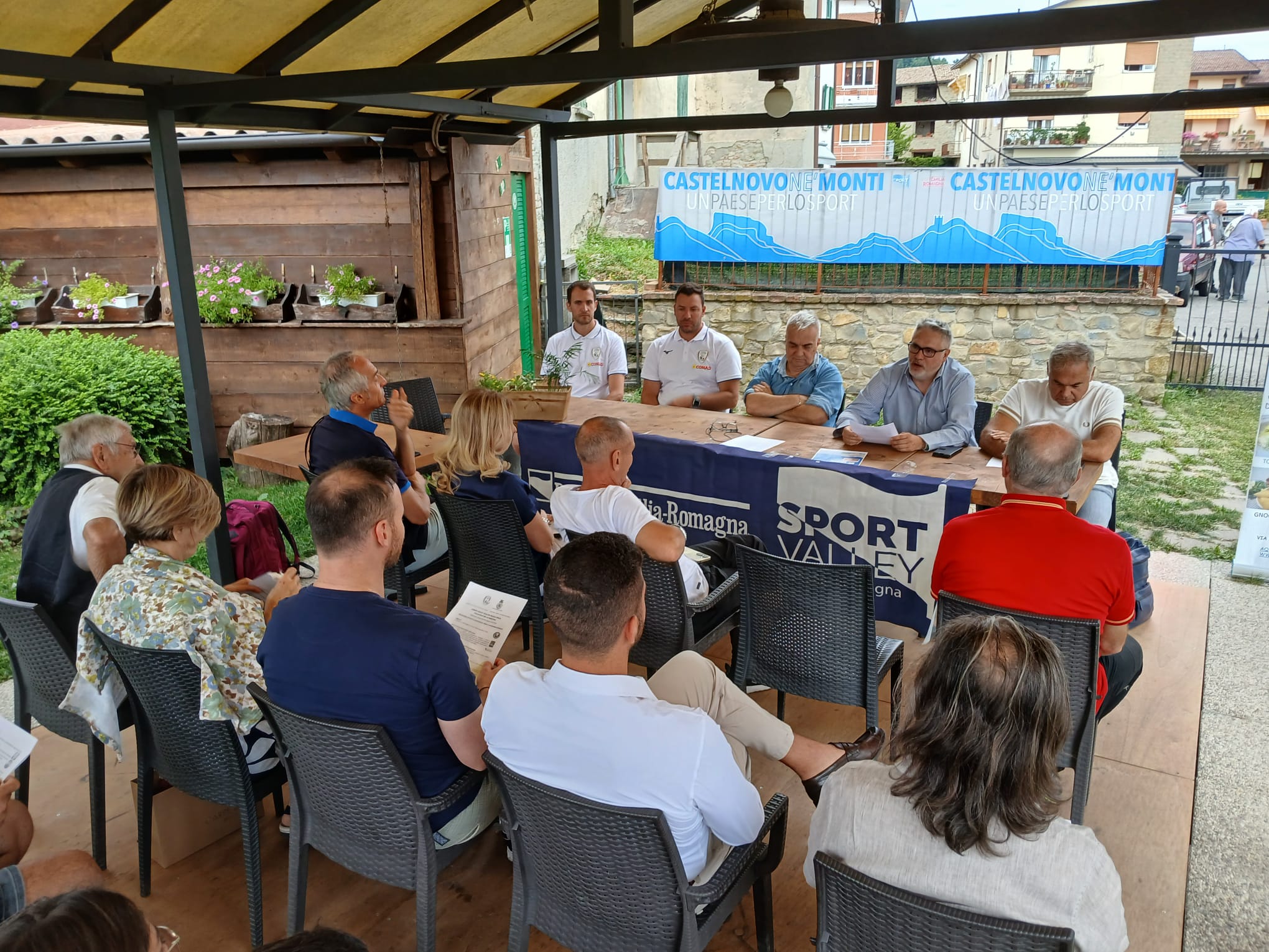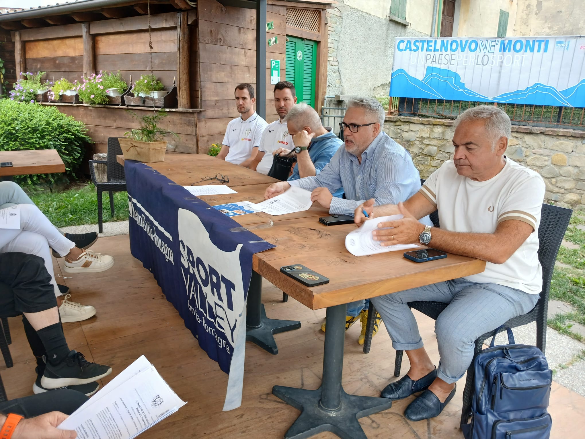 Loris Migliari, Direttore Generale di Volley Tricolore inizia il suo intervento ringraziando gli ospiti per la presenza e prosegue: “Per noi è diventata una buona abitudine quella di svolgere i primi giorni di preparazione nel territorio di Castelnovo Ne’ Monti. Siamo qui perché crediamo che una delle funzioni fondamentali di una società che rappresenta un’intera provincia sia quella di valorizzare il territorio e creare una rete di relazioni solide e significative con esso. In questi cinque anni possiamo dire di essere diventati parte integrante di questa comunità. Dopo il difficile periodo del Covid, avevamo il desiderio di contribuire alla ripartenza del territorio, e crediamo di esserci riusciti. Qui ci sentiamo a casa, anche grazie all’ospitalità e all’accoglienza che troviamo, in particolare all’Hotel Aquila Nera, che per noi è ormai un punto di riferimento.”