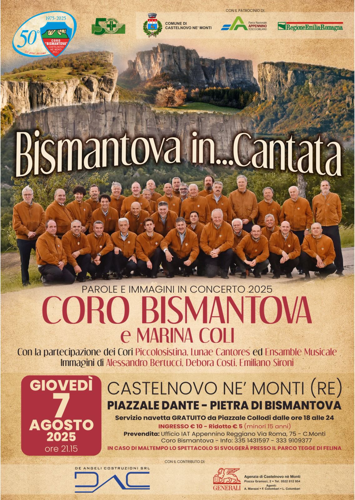 Edizione speciale quella del 2025, a 50 anni dalla fondazione del Coro Bismantova, di Parole e Immagini in Concerto, il recital in collaborazione con Marina Coli e la partecipazione, insieme al Bismantova, dei Cori Piccolosistina, Lunae Cantores ed Ensemble Musicale. Immagini di Alessandro Bertucci, Debora Costi, Emiliano Sironi