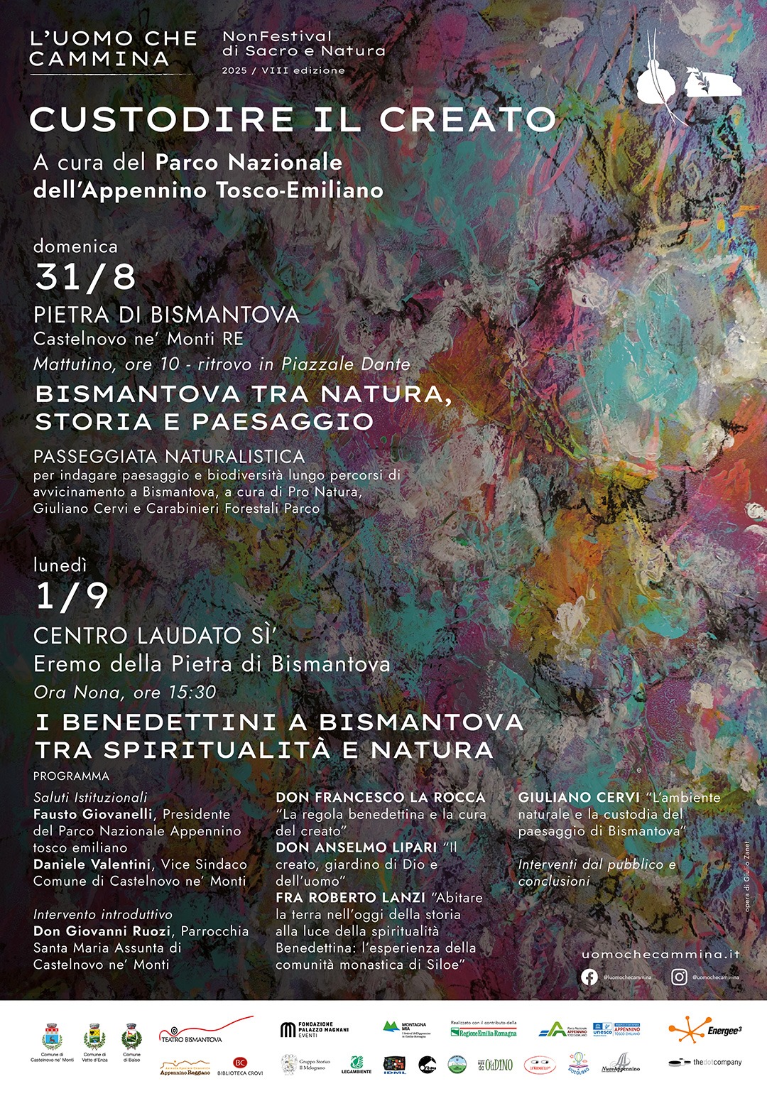 Lunedì 1 settembre è in programma un appuntamento interessante alle 15.30 al centro Laudato Sì alla Pietra di Bismantova, nell’ambito del “NonFestival” L’Uomo che cammina. Il tema sarà la presenza dei Benedettini a Bismantova, tra spiritualità e natura, con diversi ospiti quali don Francesco La Rocca, don Anselmo Lipari, fra Roberto Lanzi e l’architetto Giuliano Cervi. L’appuntamento è a cura del Parco Nazionale dell’Appennino Tosco-Emiliano (per informazioni: Biblioteca Crovi tel. 0522 610204).