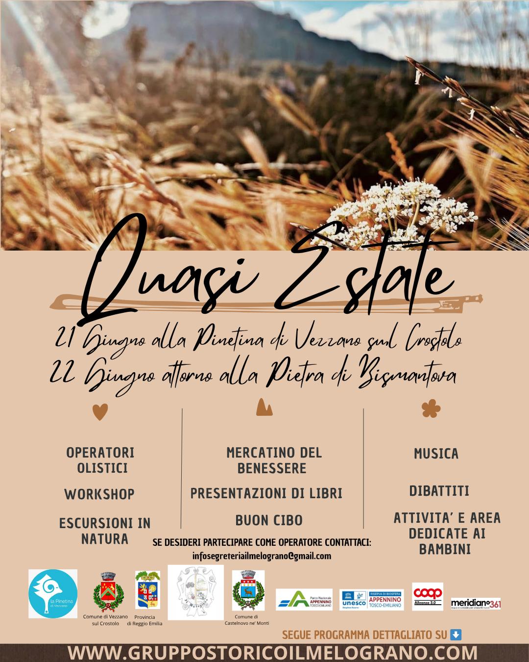 Al Centro Laudato Sì domenica 22 giugno per tutto il giorno ci sarà l’evento incentrato su benessere e bellezza “Quasi Estate attorno alla Pietra”: parteciperanno operatori olistici, ci sarà il mercatino del benessere, presentazioni di libri, cibo buono e genuino dibattiti e incontri, escursioni in natura, attività creative e l’area bimbi.
