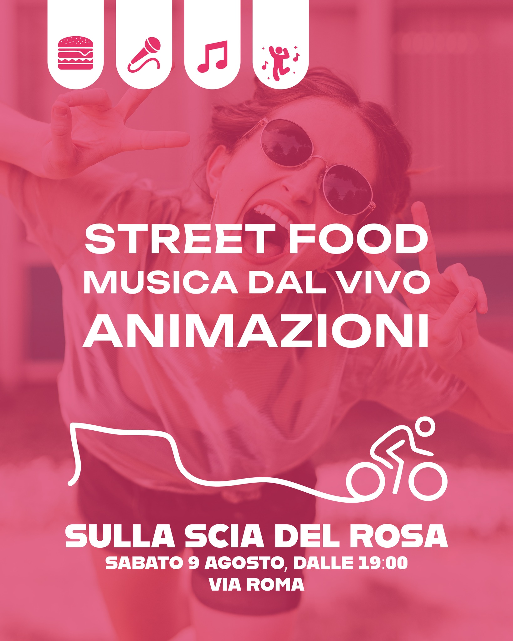 Sabato 9 agosto torna la grande serata Sulla scia del rosa, a base di street food, animazione e intrattenimento musicale dalle ore 19. In vista del grande evento via Roma sarà chiusa dall’incrocio con via Boschi fino all’ufficio postale. Lungo tutta la strada saranno presenti 14 postazioni di street food con specialità per tutti i gusti. Nella zona della Sarzassa (fino all’Isolato Maestà) ci sarà un’area bambini con gonfiabili, il triciclo Grillo, salterini e zucchero filato. E poi tanta musica live: all’incrocio del grattacielo il concerto di Daniele Anzanello e a seguire Dj rotation; in piazza Martiri della Libertà concerto della Shary Band e a seguire Dj rotation con Seven Monkeys, Cristian Battistini, Giovanni Manfredi e Martino. Per tutta la serata ci saranno anche i negozi aperti. Un evento che promette grande divertimento per tutta la famiglia.