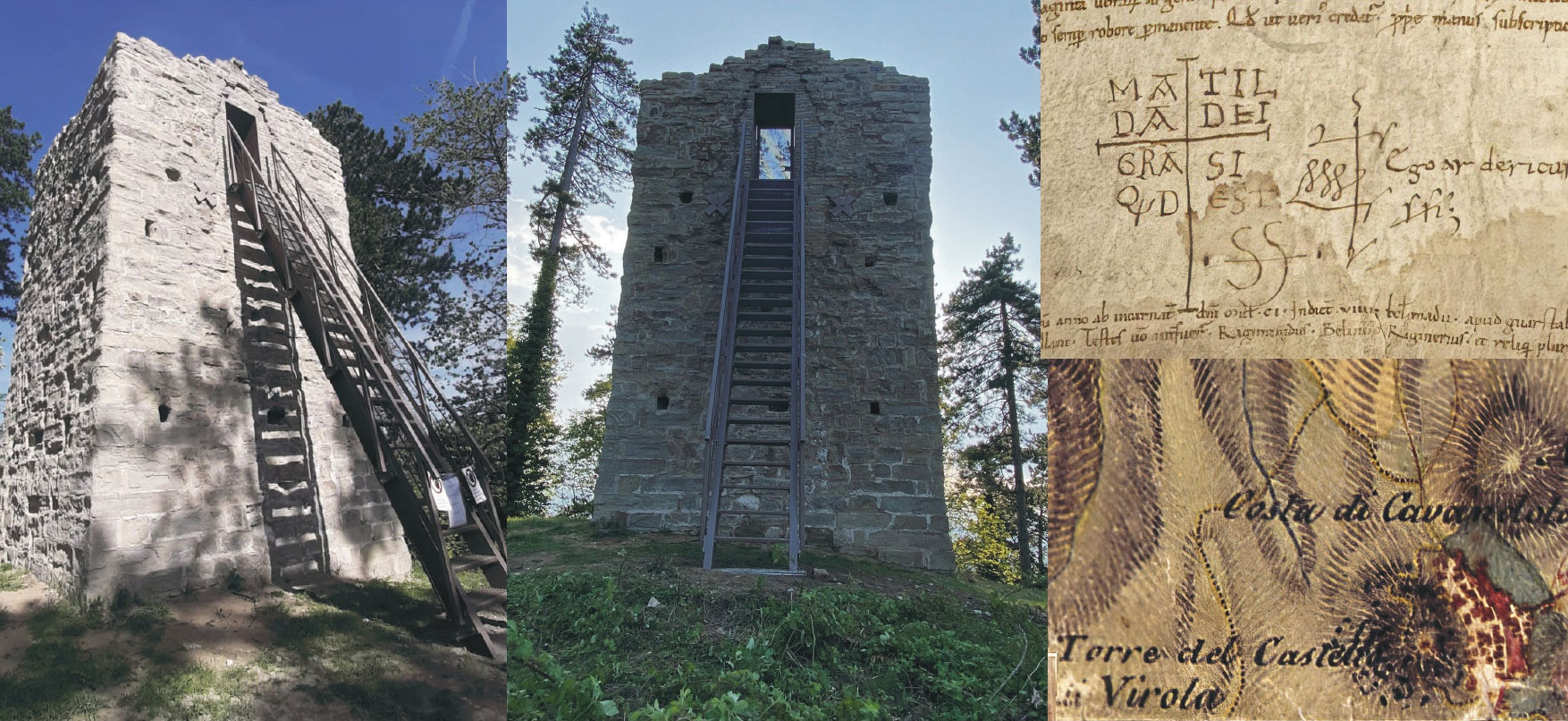 Monte Castello è l’altura che sorge a ridosso del Centro Storico di Castelnovo Monti. Oggi è una delle tre pinete che caratterizzano il centro urbano, insieme a Monte Bagnolo e a Monte Forco. Esse rappresentano un elemento caratteristico del paese. In particolare le prime due sono ricche di percorsi ed itinerari che le rendono fruibili per escursioni o semplici passeggiate. Monte Bagnolo ha un ampio “anello” pianeggiante, attrezzato anche con informazioni sull’importanza del movimento fisico a tutte le età per la salute cardiovascolare e non solo, ed un piccolo parco giochi per i bambini. Monte Castello rappresenta un luogo fortemente identitario per il paese: sulla cima sono presenti i resti di una fortificazione di epoca matildica, che secondo gli studiosi sarebbe quella che dà anche il nome al paese, seguendo in linea temporale il più antico castello che sorgeva sulla Pietra di Bismantova, di fondazione bizantina, poi abbandonato per problemi strutturali. La struttura presente su Monte Castello è stata oggetto in anni recenti di campagne di scavo e di studio. Così descrive la struttura oggetto di studi l’architetto Walter Baricchi, che ha seguito la genesi del progetto di intervento ed è responsabile del Club Unesco di Reggio: “Si tratta di un antico castello canossano, certamente parte integrante del sistema fortificato delle terre matildiche a controllo sia del principale centro abitato dell’Appennino reggiano che della importante strada per la Toscana attraverso il passo di Pradarena. Attualmente è allo stato di rudere rimanendo l’antica torre e resti delle mura. L’Amministrazione comunale, in collaborazione con il Club Unesco di Reggio Emilia e l’associazione di volontariato Archeomontagna, ha avviato un progetto di recupero e valorizzazione del sito. La storia del castello è molto antica: verso la metà del secolo X la famiglia Canossa aveva esteso il suo dominio nella nostra montagna e, poiché sono nominate in documenti dell’epoca Felina e Malliaco, è giusto pensare che questo dominio si estendesse anche su Bismantova e sul nascente Castelnovo. Tra il 1062 e il 1100 questa famiglia costruì un altro castello, ‘castrum novum’, che doveva poi dare il nome al paese, in contrapposizione al ‘castrum vetus’ che sorgeva su Bismantova. Sul monte fu costruita una torre o guardiola che esiste ancora in parte. Costruito dai Canossa il nuovo castello, questo nel 1111 fu donato da Matilde al monastero di Canossa, insieme con Felina e Sarzano. Ormai il nome nuovo di questo paese entra nei documenti e a poco a poco diventerà popolare. In una bolla di Papa Adriano IV del 1156 vengono confermati a Manfredi, abate di quel monastero, Sarzano e Felina e Castrum Novum cum capella et curte, e lo stesso si dirà in un’altra carta del 1188. Si ha notizia e documentazione dell’esistenza di quattro cunicoli sotterranei che sboccavano ai margini inferiori della pineta o del vecchio borgo”.